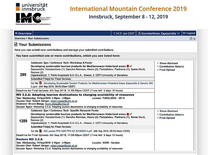 Interreg MED Programme, Emblematic outcomes at International Mountain Conference (IMC) & AIRTH conference.
