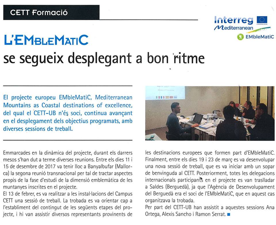 “L’ EMbleMatiC se segueix desplegant a bon ritme” ToT CETT magazine.